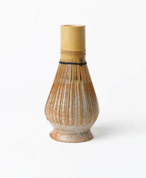 Herkömmliche Chasenhalter sind dir zu eintönig? Dann wirst du mit diesen Einzelstücken von Hendrik Schöne sicher auf deine Kosten kommen. Hendrik hat den Matchabesenhalter (auch Chasentate) aus Steinzeugmassen und auf der Drehscheibe gefertigt. Somit ist jedes Stück ein absolutes Unikat, in dem vor allem viel Liebe zum Detail steckt. Während man am Boden noch das raue Material spüren kann, wird es am Körper von einer orange-cremefarbenen Shino Glasur bedeckt, die durch organische Ascheanflug-Details ergänzt wird. Gib deinem Matchabesen jetzt ordentlichen Halt und schütze so seine Form.
