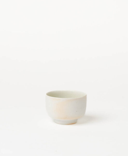 Elegante, klassisch geformte Teeschale aus dem Hause Ales Dancak. Durch das Gewicht des Porzellans liegt sie perfekt in der Hand und ist ein Garant für den perfekten Teegenuss. Die kleine, weiße Teeschale ist außen unglasiert, weswegen die Flammenspuren des Holzbrandes als ein hauch orange sichtbar werden. Das Innere der Teeschale ist blaßgrün glasiert.