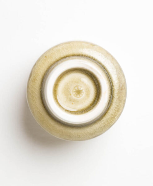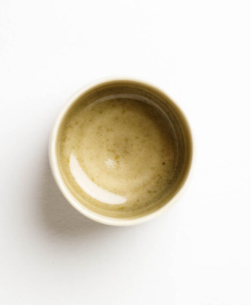 Elegante, klassisch geformte Han tsutsu-gata (jap. 半筒型) Teeschale aus dem Hause Ales Dancak. Durch das Gewicht des Porzellans liegt sie perfekt in der Hand und ist ein Garant für den perfekten Teegenuss. Die blaßgrüne Teeschale besticht durch ihr einzigartig organisches Aussehen und die angenehme glatte Oberfläche.