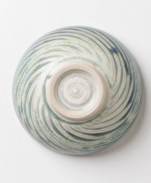 Der 1957 in Münster geborene Berthold Neumann studierte zu erst Chemie, bevor er sein Kunststudium mit dem Schwerpunkt Keramik in München absolvierte. Danach betrieb er Werkstätten in Kiel und in Emmendingen bis er sich 1996 in Jestetten/Baden-Württemberg niederließ und seine Werkstatt-Atelier „Die Schale“ eröffnete. Berthold Neumann hat seine ganz eigene Art entwickelt mit Ton zu arbeiten. Das beginnt schon mit der Herstellung der Tonmasse, denn diese wird in einem aufwendigen Verfahren über mehrere Monate hinweg, gereinigt und aufgearbeitet, um einen makellose Ausgangsmasse zu haben. Im Anschluss dreht Neumann seine Teeschalen auf der Drehscheibe und nachdem sie lederhart ausgetrocknet sind, wird die Oberfläche von Neumann mit entsprechenden Werkzeugen strukturiert. Dadurch entstehen oft, wellen- oder spiralförmige Muster, die durch die besonderen Glasuren noch betont werden. Beim Betrachten der einzigartigen Teeschalen von Berthold Neumann breitet sich eine innere Ruhe aus, denn die faszinierenden, oft türkis-farbenen oder beigen, Glasuren, ziehen dich mit ihrem Detailreichtum in den Bann.