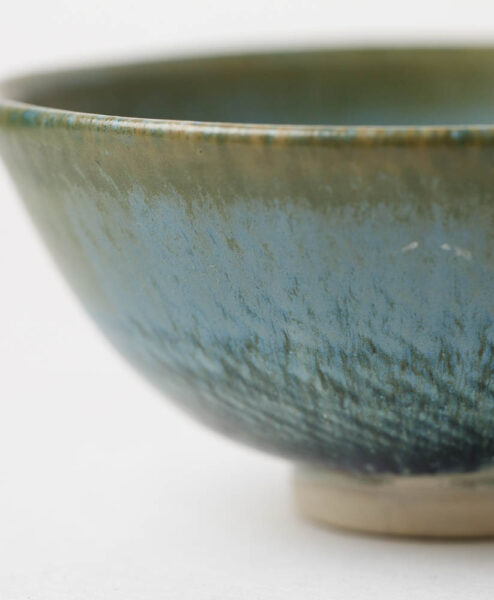 Der 1957 in Münster geborene Berthold Neumann studierte zu erst Chemie, bevor er sein Kunststudium mit dem Schwerpunkt Keramik in München absolvierte. Danach betrieb er Werkstätten in Kiel und in Emmendingen bis er sich 1996 in Jestetten/Baden-Württemberg niederließ und seine Werkstatt-Atelier „Die Schale“ eröffnete. Berthold Neumann hat seine ganz eigene Art entwickelt mit Ton zu arbeiten. Das beginnt schon mit der Herstellung der Tonmasse, denn diese wird in einem aufwendigen Verfahren über mehrere Monate hinweg, gereinigt und aufgearbeitet, um einen makellose Ausgangsmasse zu haben. Im Anschluss dreht Neumann seine Teeschalen auf der Drehscheibe und nachdem sie lederhart ausgetrocknet sind, wird die Oberfläche von Neumann mit entsprechenden Werkzeugen strukturiert. Dadurch entstehen oft, wellen- oder spiralförmige Muster, die durch die besonderen Glasuren noch betont werden. Beim Betrachten der einzigartigen Teeschalen von Berthold Neumann breitet sich eine innere Ruhe aus, denn die faszinierenden, oft türkis-farbenen oder beigen, Glasuren, ziehen dich mit ihrem Detailreichtum in den Bann.