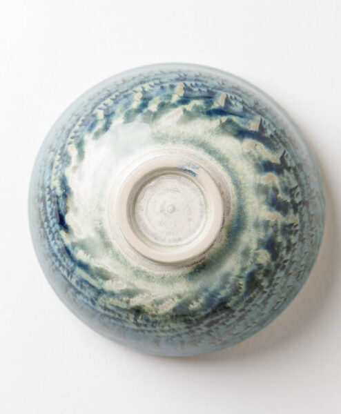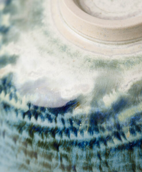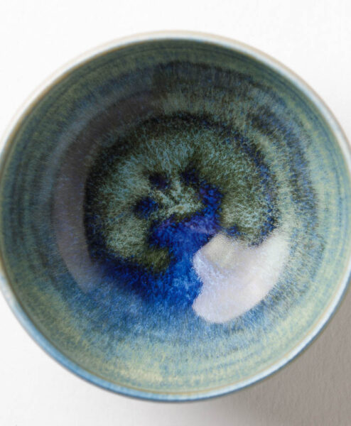 Der 1957 in Münster geborene Berthold Neumann studierte zu erst Chemie, bevor er sein Kunststudium mit dem Schwerpunkt Keramik in München absolvierte. Danach betrieb er Werkstätten in Kiel und in Emmendingen bis er sich 1996 in Jestetten/Baden-Württemberg niederließ und seine Werkstatt-Atelier „Die Schale“ eröffnete. Berthold Neumann hat seine ganz eigene Art entwickelt mit Ton zu arbeiten. Das beginnt schon mit der Herstellung der Tonmasse, denn diese wird in einem aufwendigen Verfahren über mehrere Monate hinweg, gereinigt und aufgearbeitet, um einen makellose Ausgangsmasse zu haben. Im Anschluss dreht Neumann seine Teeschalen auf der Drehscheibe und nachdem sie lederhart ausgetrocknet sind, wird die Oberfläche von Neumann mit entsprechenden Werkzeugen strukturiert. Dadurch entstehen oft, wellen- oder spiralförmige Muster, die durch die besonderen Glasuren noch betont werden. Beim Betrachten der einzigartigen Teeschalen von Berthold Neumann breitet sich eine innere Ruhe aus, denn die faszinierenden, oft türkis-farbenen oder beigen, Glasuren, ziehen dich mit ihrem Detailreichtum in den Bann.