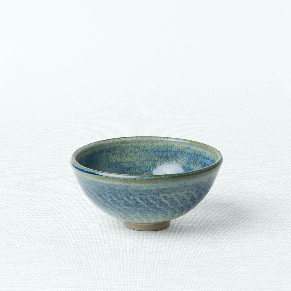 Mittlere, türkis-blaue mit orangen Akzenten versetzte Teeschale aus dem Hause Berthold Neumann. Die Teeschale kommt in einer klassischen Wan-Nari-Form und liegt mit ihrer Form besonders gut in der Hand. Die Tonmasse hält die Temperatur des Tees zuverlässig und gibt die Wärme sanft an deine Haut ab. Die faszinierende Glasur erhält die Schale durch ein 2-Glasuren-Verfahren, welches auf für die seidenmatte Oberfläche verantwortlich ist. Sie erinnert an die stürmische Tiefsee und das Kobalt-Blau im Inneren der Teeschale zieht dich sofort in seinen Bann.