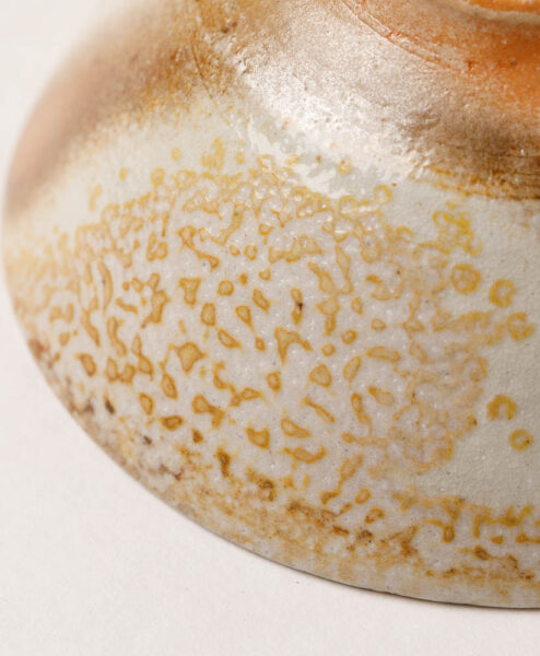 Elegante, klassisch geformte Teeschale aus dem Hause Jaroslav Marek. Die kleine, leichte Teeschale liegt ausgezeichnet in der Hand und ist ein Garant für den perfekten Teegenuss. Dieses Unikat wurde bei anhaltend hohen Temperaturen im Anagama-Ofen (= Holzbrandofen) gebrannt. Die beim Brennen entstehende Asche haftet an den Tonobjekten und schmilzt dort, wodurch eine einzigartige und organische Holzbrandglasur entsteht. Die unregelmäßige Glasur mit feinen Sprenkeln von warmen Brauntönen und sanften Gelbnuancen erzeugt eine harmonische Verbindung von Natur und Kunst. Die Oberfläche wirkt lebendig und vielseitig, schließlich trägt sie die Spuren des Feuers in sich. Perfekt für Teeliebhaber, die nicht nur den Geschmack des Tees, sondern auch die Kunstfertigkeit und das Handwerk schätzen.