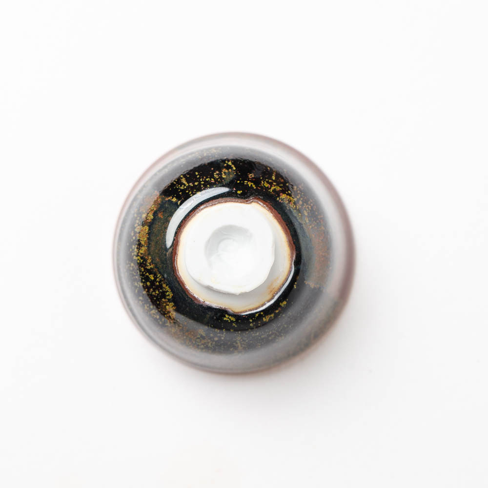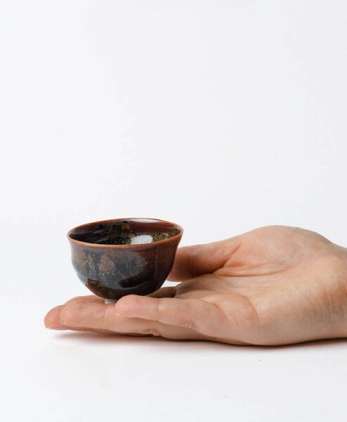 Diese kraftvolle Teeschale von Jeremy Keala vereint die Wärme des Feuers mit der Frische des Morgentaus. Ihre sanft geschwungene Form liegt harmonisch in der Hand, als sei sie in einem fließenden Atemzug geformt. Die Glasur zeigt ein Zusammenspiel aus erdigem Rotbraun, tiefem Schwarz und einem hellen, fast perlenden Akzent, der wie Tautropfen auf glühendem Stein wirkt.