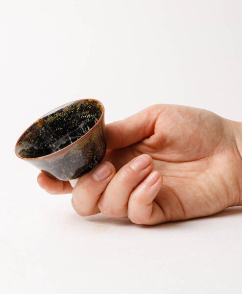Diese kleine, ausdrucksstarke Teeschale von Jeremy Keala vereint kraftvolle Natürlichkeit mit feinfühliger Formgebung. Die asymmetrische Silhouette verleiht der Schale eine lebendige Dynamik, als wäre sie in einem einzigen, fließenden Moment geformt worden. Ihre organische Form liegt angenehm in der Hand und lädt zu achtsamen Teemomenten ein.