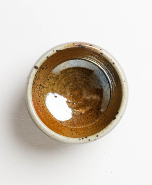 Elegante, klassisch geformte Teeschale vom Taiwanesischen Töpfermeister Zhi Ming Xie. Herr Xies einzigartige Teeschalen erhalten durch den Holzbrand eine ganz eigene Farbgebung, die einen Hauch Metalloptik versprechen. So glänzt die Schale je nach Lichteinfall in einem außergewöhnlichen Kupferton, den man so normalerweise nicht in Keramikgefäßen findet. Neben den munteren Kupfertönen weißt jede Schale von Herrn Xie auch noch einzigartige Holzbrandmuster auf, welche oft eine halb-matte bis matte Oberfläche haben. So entsteht ein spannender Texturenmix, der jede Schale zu einem echten Unikat macht.