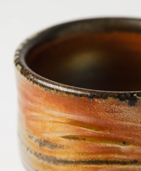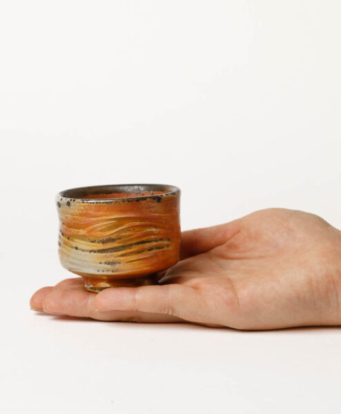 Elegante, klassisch geformte Teeschale vom Taiwanesischen Töpfermeister Zhi Ming Xie. Herr Xies einzigartige Teeschalen erhalten durch den Holzbrand eine ganz eigene Farbgebung, die einen Hauch Metalloptik versprechen. So glänzt die Schale je nach Lichteinfall in einem außergewöhnlichen Kupferton, den man so normalerweise nicht in Keramikgefäßen findet. Neben den munteren Kupfertönen weißt jede Schale von Herrn Xie auch noch einzigartige Holzbrandmuster auf, welche oft eine halb-matte bis matte Oberfläche haben. So entsteht ein spannender Texturenmix, der jede Schale zu einem echten Unikat macht.