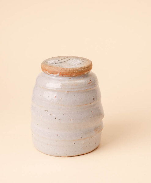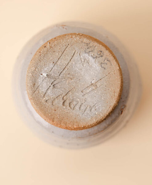 Die Tonmasse hält die Temperatur des Tees zuverlässig und gibt die Wärme gleichmäßig an deine Haut ab. Der Teebecher wurde im Holzbrandofen gebrannt und bekommt dadurch ihre markantes, organisches Aussehen. Die verwendete Steinzeugmasse stammt aus dem Zittauer Gebirge und wurde vom Künstler eigenhändig gesammelt und hergestellt.