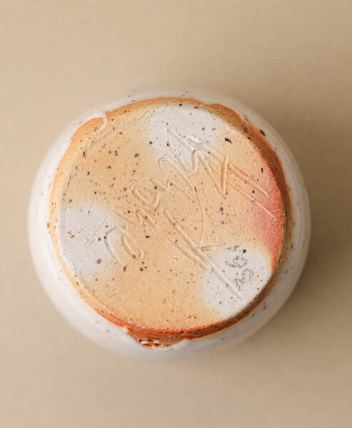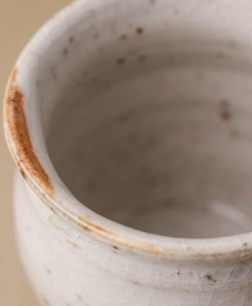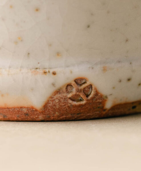 Die Tonmasse hält die Temperatur des Tees zuverlässig und gibt die Wärme gleichmäßig an deine Haut ab. Die Teebecher wurde im Holzbrandofen gebrannt und bekommen dadurch ihre markantes, organisches Aussehen. Die verwendete Steinzeugmasse stammt aus dem Zittauer Gebirge und wurde vom Künstler eigenhändig gesammelt und hergestellt. An manchen stellen siehst du sie noch charmant durch die Glasur blitzen.