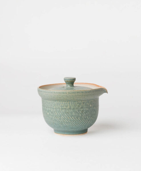 Diese grifflose, japanische Kanne (= Shiboridashi) ist ein Unikat des tschechischen Keramikkünstlers Aleš Dančák, der überwiegend an der Töpferscheibe arbeitet. Die grün-blaue Kanne schmeichelt dank ihrer glatten Oberfläche nicht nur Deiner Hand, sondern erleichtert auch das Abgießen Deines Tees dank der kleinen Löcher im Deckel.