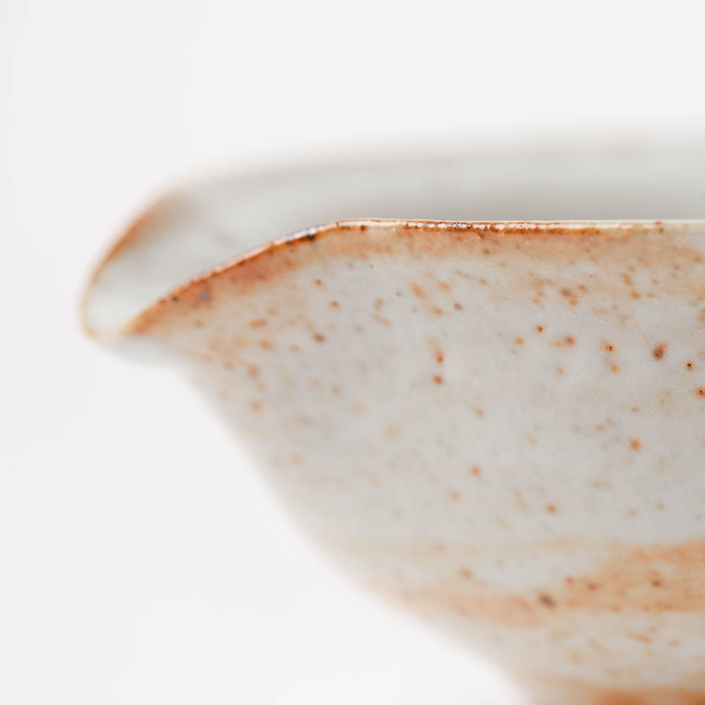 Helles, cremefarbenes Weiß wird am Rand von einem warmen Zimton umspielt – Zimtschnecke vereint die milde Süße feiner Keramik mit der Würze handwerklicher Glasurkunst. Ein Yuzamashi, der Wärme und Behaglichkeit ausstrahlt und jede Teezeremonie um eine sanfte Note bereichert.