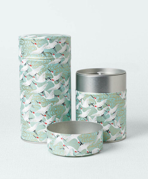 Die Teedose Rengo besticht durch ihr helles Kranichmuster. Der Kranich gilt als eins der Hauptmotive in der japanischen Kunst und verkörpern dabei Langlebigkeit und Reinheit.