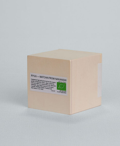 Entscheidend für die Qualität des RYUU ist zudem, dass es sich um einen Koicha-Matcha handelt, der nicht für die Zubereitung als Usucha-Matcha gedacht ist. Wer also einen gewohnten Matcha trinken möchten, für den ist der RYUU sicherlich nicht der richtige Tee, sondern eher für Matcha-Kenner, die sich gerne dem Thema Koicha widmen möchten und einen Koicha mit einer Nuance kennenlernen möchten, die ihm den Rang verleiht, Verwendung bei einer Karamono-Teezeremonie zu finden. Bei der Karamono-Teezeremonie wird nicht nur der Auswahl des Matcha besondere Aufmerksamkeit zuteil, über das bei der Teezeremonie ohnehin schon übliche, hohe Maß hinaus, sondern auch die verwendeten Tee-Utensilien stammen aus edelsten Quellen und sind sonst oftmals eher in Museen oder Ausstellungen zu finden, als dass sie regelmäßig bei einer Teezeremonie Gebrauch fänden. Allein die Cha-ire, die Tee-Dose für den Matcha, ist bei der Karamono-Teezeremonie üblicherweise nicht wie sonst aus Holz, sondern aus Ton, von einem bekannten Keramik-Meister angefertigt.
