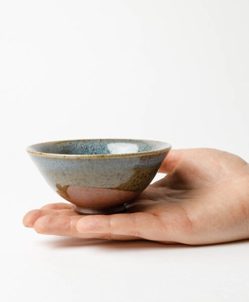 Diese charaktervolle Teeschale stammt von der ukrainischen Keramikkünstlerin Daria Miroshnychenko, die derzeit in Prag lebt und arbeitet. Ihre Werke verbinden traditionelle Formen mit einer individuellen, lebendigen Handschrift – wie diese Teeschale eindrucksvoll zeigt.