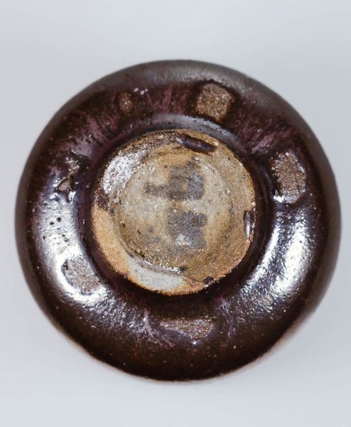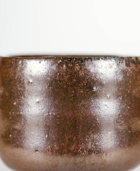 Kleine, dunkelpurpurne Teeschale aus dem Hause Hendrik Schöne, welche farblich auch an Aubergine erinnert. Die Teeschale Nasukon kommt in einer klassischen Tsutsu-gata-Form (Zylinder) und liegt mit ihrer natürlichen Schwere besonders gut in der Hand. Die Tonmasse hält die Temperatur des Tees zuverlässig und gibt die Wärme gleichmäßig an deine Haut ab. Die Teeschale wurde im Holzbrandofen gebrannt und bekommt dadurch ihre markantes, halbmattes Aussehen. Vor allem der Schalen Grund bezaubert durch sein einzigartig glänzendes Wassertropfen-Muster, welche sie zu einem echten Unikat macht.