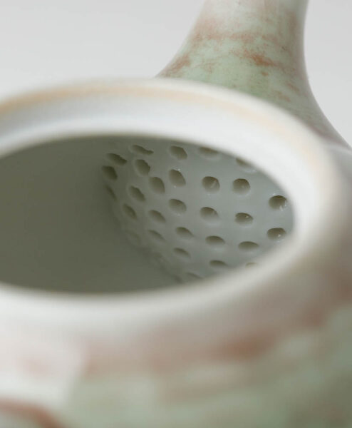 Diese mittelgroße Teekanne ist ein Unikat des tschechischen Keramikkünstlers Aleš Dančák, der überwiegend an der Töpferscheibe arbeitet. Die rosa und mintfarbene Kanne schimmert so schön wie die Nordpolarlichter über Schweden und schmeichelt dank ihrer glatten Oberfläche nicht nur Deiner Hand, sondern auch das Abgiessen deines Tees wird mit dem integrierten Kugelsieb zum absolutem Kinderspiel.
