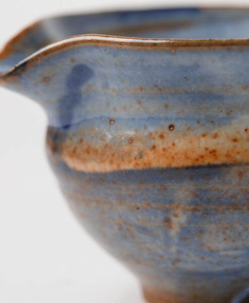 Ein Spiel aus tiefem Himmelblau und sanftem Nebelweiß – Schleierwolke erinnert an den Blick in einen dämmernden Himmel, kurz bevor der Tag erwacht. Seine wellige Glasur trägt die Ruhe des Himmels in sich und verleiht dem Wasserfluss eine fast meditative Qualität.